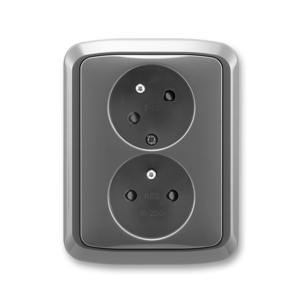 Složená dvojzásuvka TANGO 5513A-C02357 S2 v kouřově šedé barvě s horní natočenou zásuvkou pro lepší přístup přístrojových kabelů je oblíbenou dvojzásuvkou výrobce ABB, určená pro použití v domácnostech, ale i průmyslových objektech. Doporučená montáž s elektroinstalační krabicí 68.