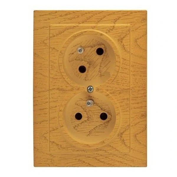 Kompletní složená domovní dvojzásuvka v imitaci světlého dřeva dub ZE2K-D1 je klasickou dvojnásobnou zásuvkou s ochrannými kolíky 16A / 250V pro montáž do instalačních krabic s minimální výškou 45mm.