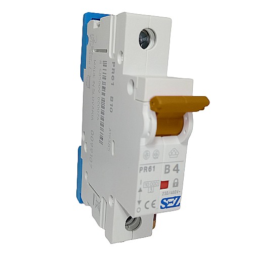 Jednofázový jistič SEZ PR61 B 4A na DIN lištu je jednopólový jistič s charakteristikou zátěže B a maximálním proudem 4 A. Jistič slouží k ochraně elektrických obvodů proti přetížení a zkratu.