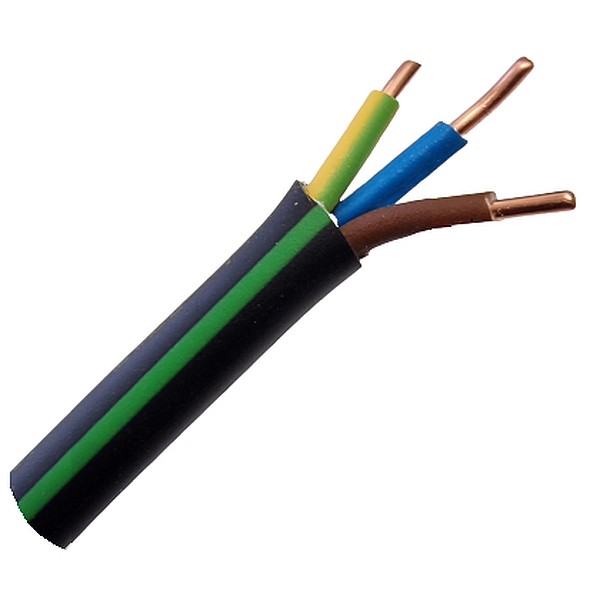 Kabel CYKY J 3x2,5 černé barvy se 3 vodiči průměru 2,5 mm2 je PVC kabel s pevnými měděnými vodiči, kabel CYKY-J 3x2,5 pro pevné uložení do země, zdi, omítky, nebo na vzduchu bez mechanického namáhání.