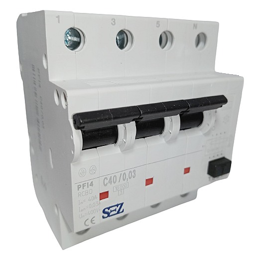 Proudový chránič s nadproudovou ochranou SEZ PFI4 B10/0,03 na DIN lištu je čtyřpólový proudový chránič s maximálním proudem 10 A a jmenovitým reziduálním proudem 0,03 A s charakteristikou zátěže B.