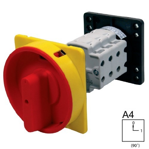 - SEZ S16 JBU 1103 A4R Vestavný vačkový spínač se zadním upevněním v rozvaděči, uzamykatelný na visací zámky 16A, 0-1, 3P, červená páčka