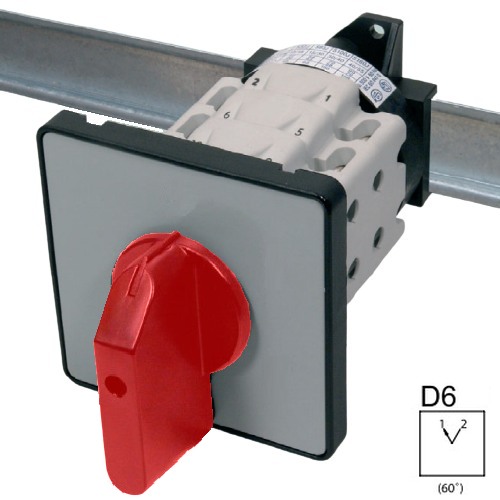 - SEZ S16 JLD 2251 D6R Vestavný vačkový spínač s čelní deskou, s upevněním na lištu, bez polohy 0, 16A, 1-2, červená páčka