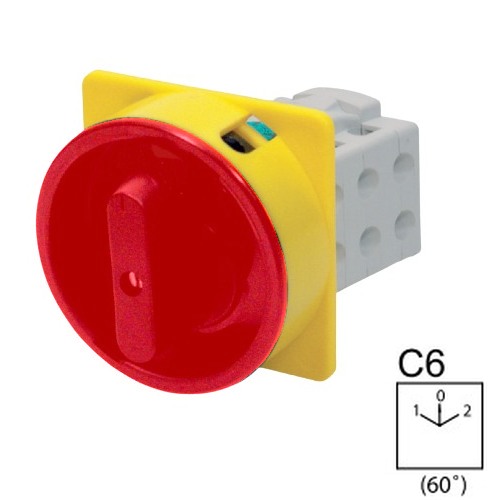 - SEZ S16 JU 9151 C6R Vestavný vačkový spínač, uzamykatelný na visací zámky, reverzační přepínač 16A, 1-0-2, červená páčka