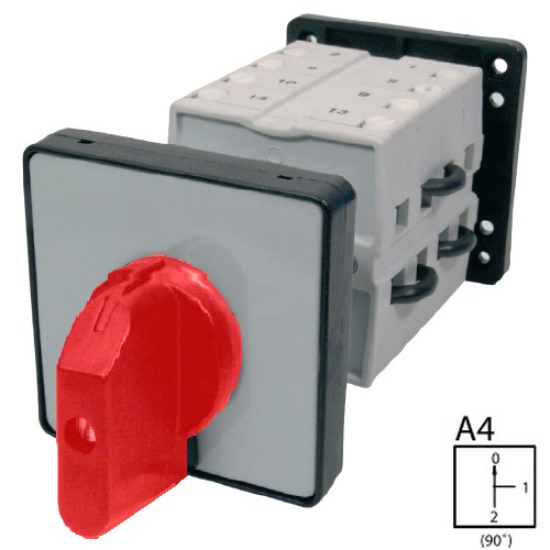 - SEZ S160 JBD 2203 C4R Vestavný vačkový spínač s čelní deskou se zadním upevněním v rozvaděči, přepínač sítí 160A, 1-0-2, červená páčka