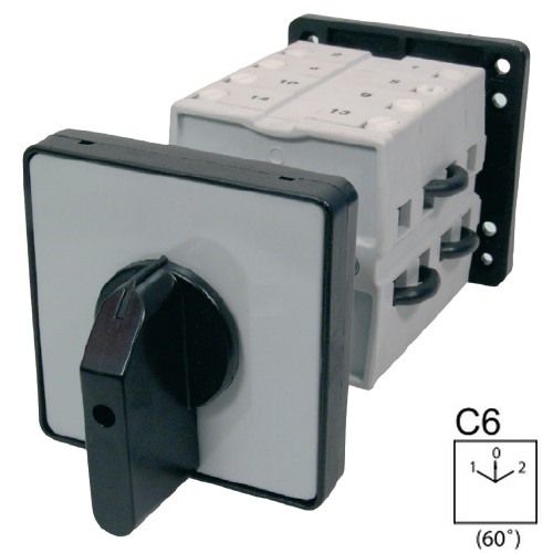 - SEZ S160 JBD 2203 C6 Vestavný vačkový spínač s čelní deskou se zadním upevněním v rozvaděči, přepínač sítí 160A, 1-0-2