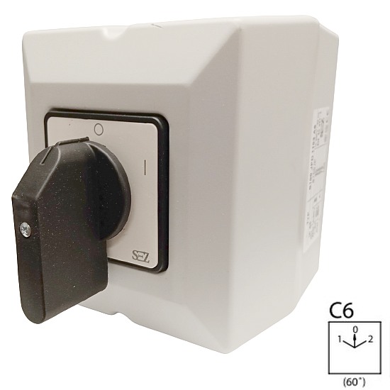 SEZ S160 JPD 2203 C6 Vačkový spínač v krytu IP65, s čelní deskou, přepínač sítí 160A, 1-0-2na dotaz4 430,00 Kč/ ks3 661,16 Kč bez DPH