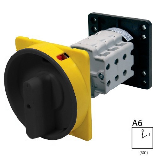 - SEZ S25 JBU 1103 A6 Vestavný vačkový spínač se zadním upevněním v rozvaděči, uzamykatelný na visací zámky 25A, 0-1, 3P