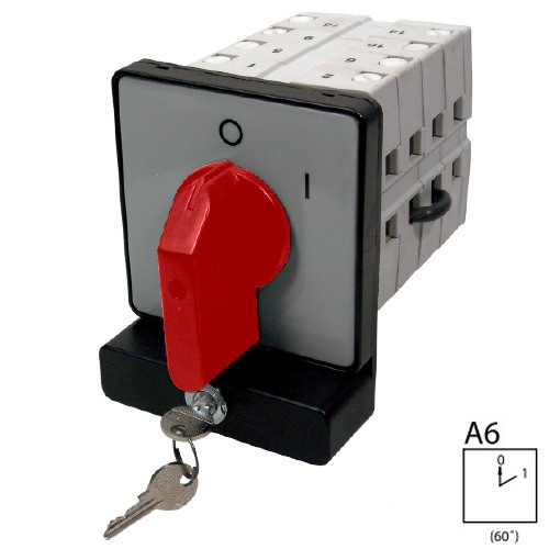 SEZ S250 JZ 03 R Otočný spínač s možností uzamykání 250A, třípólový vypínač, červená páčka