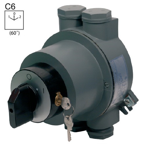 - SEZ S32 JAZ 9151 C6 Vačkový spínač v hliníkové skříni, uzamykatelný na zámek, reverzační přepínač 32A, 1-0-2