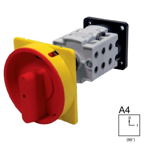 - SEZ S32 JBU 1104 A4R Vestavný vačkový spínač se zadním upevněním v rozvaděči, uzamykatelný na visací zámky 32A, 0-1, 4P, červená páčka