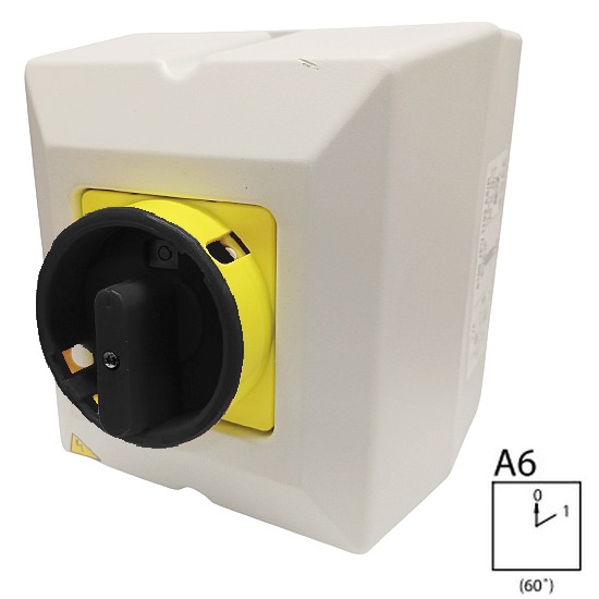 SEZ S32 JPU 1106 A6 Vačkový spínač v krytu IP65, uzamykatelný na visací zámky 32A, 0-1, 6P