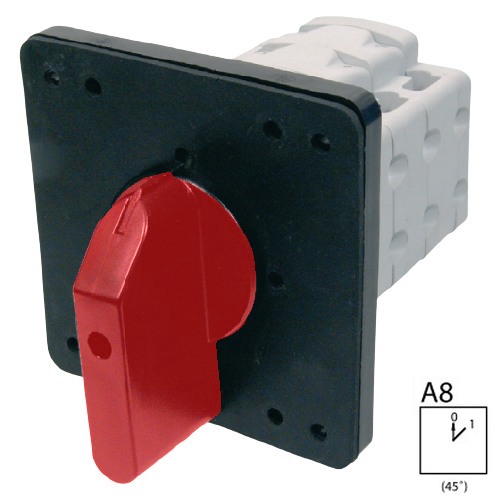 - SEZ S40 JG 1103 A8R Vestavný vačkový spínač s těsněním 40A, 0-1, 3P, červená páčka