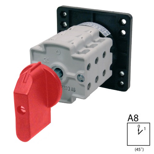 - SEZ S40 JO 1103 A8R Vestavný vačkový spínač bez čelní desky se zadním upevněním 40A, 0-1, 3P, červená páčka