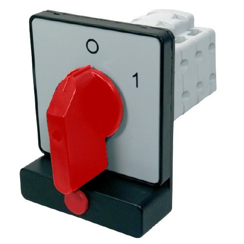 - SEZ S40 JTG 1103 A6R Vestavný vačkový spínač, s tlačítkem blokující páčku v poloze 0, s těsněním 40A, 0-1, 3P, červená páčka