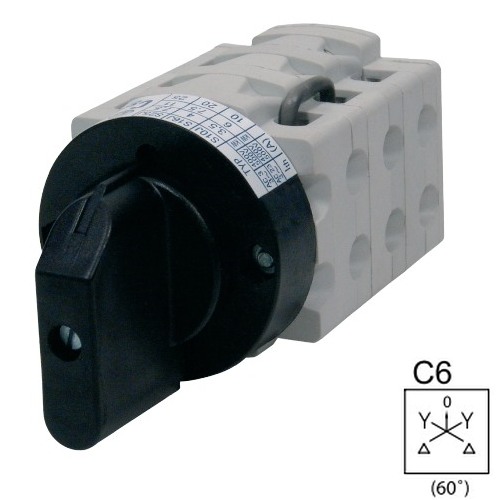 - SEZ S63 J 9153 C6 Vestavný vačkový spínač bez čelní desky, reverzační rozběhoový spínač 63A, troj.-Y-0-Y-troj.