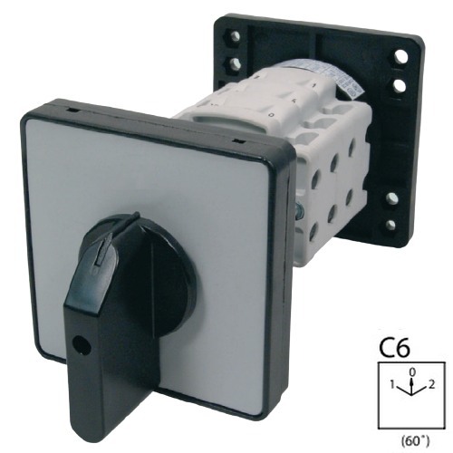 - SEZ S63 JBD 2203 C6 Vestavný vačkový spínač s čelní deskou se zadním upevněním v rozvaděči, přepínač sítí 63A, 1-0-2