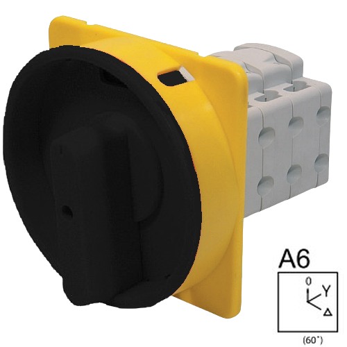 - SEZ S63 JU 9551 A6 Vestavný vačkový spínač, uzamykatelný na visací zámky, rozběhový spínač 63A, 0-Y-troj.