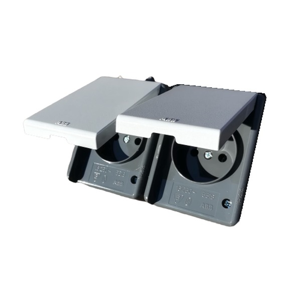 - Venkovní dvojzásuvka IP44 na zeď vodotěsná ABB 5518-2029 S šedá