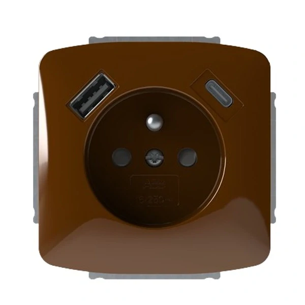 ABB 5569A-A32357 H Tango Zásuvka 1násobná s kolíkem, s clonkami, s nabíjením USB-A, USB-C, hnědá