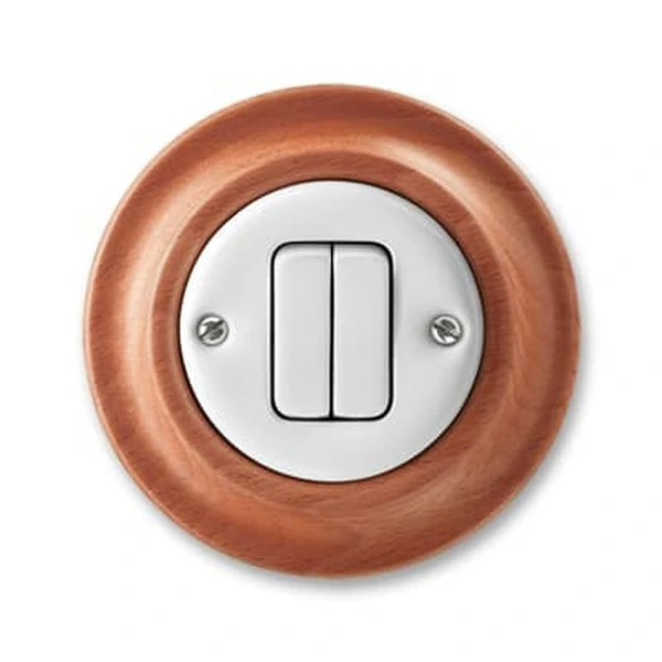 Bílý/třešeň porcelánový vypínač Decento od firmy ABB je originální součástí domácnosti, která spojuje tradiční materiály a moderní technologii. Dvojitý schodišťový vypínač se prodává kompletní, tedy kvalitní strojek i keramický kryt. Umožňuje ovládat dvě svítidla ze dvou různých míst. Vypínače a zásuvky ABB Decento se hodí se do vintage interiérů či historických prostor, kde je můžete kombinovat s dalšími přístroji této řady.
