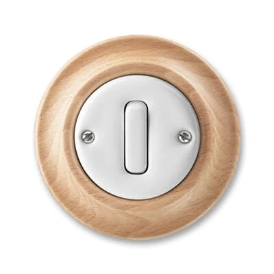 Retro vypínač č.6 ABB Decento 3559K-C06345 50 v bílém/přírodní buk, lesklém provedení má dimenzovaný proud 10 A a napětí 250 V. Vhodnou instalační krabici najdete v sekci K montáži. Pro instalaci více přístrojů vedle sebe musí být rozteč středů instalačních krabic alespoň 90 mm. Vypínač Decento má bezšroubové svorky pro vodiče 1-2,5 mm² a je upevněn šrouby.