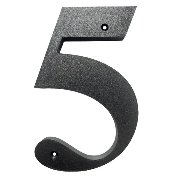- Domovní číslo popisné 5 na zeď, vrata, sloupky s dírami pro vruty barva černá, výška 170 mm