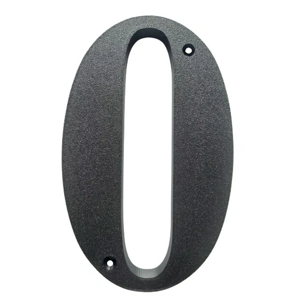Domovní číslo popisné 0 v černé barvě pro montáž na zeď, vrata, sloupky, rozměry 170 x 105 x 12 mm.