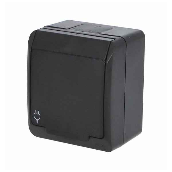 Venkovní jednoduchá zásuvka Famatel 5321-09 GALATEA IP44 Zásuvka v černé barvě s krytím IP44 pro venkovní instalaci a montáží na zeď.