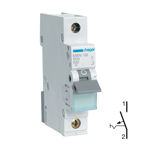 HAGER MBN106 Jistič 1 pól. 6A, charakteristika B, 6 kA