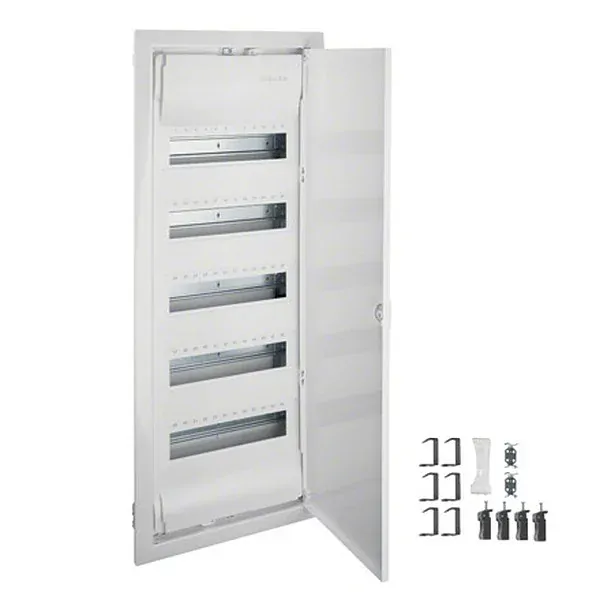 Plastová rozvodnice HAGER VH60NE do dutých příček volta,, s krycím rámečekem a dvířky z ocelového plechu 5-řadá, 60 + 10 mod., s kryatím IP 30.