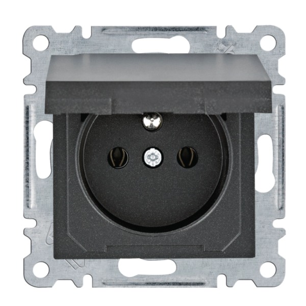 - HAGER WL1123 Lumina Zásuvka se zemnícím kolíkem a víčkem, IP44, černá mat