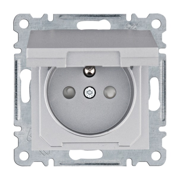 HAGER WL1142 Lumina Zásuvka se zemnícím kolíkem, s clonkami a víčkem, IP44, stříbrná mat