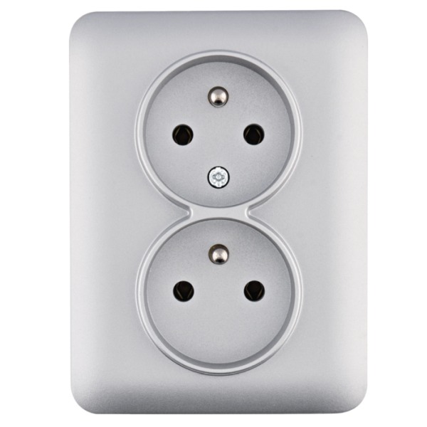 - HAGER WL1272 Lumina soul Dvojzásuvka s ochranným kolíkem kompletní 16A/250V, stříbrná mat