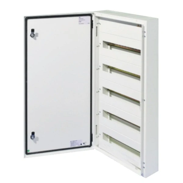 Kovová skříň SEZ T-BOX 90/5/18 je tu pro vás! Tato prémium nástěnná rozvodnice s 90 moduly ve čtyřech řadách po 18 modulech kombinuje vysokou ochranu IP 65, robustní konstrukci a nadčasový design – ideální řešení pro domácnosti, dílny, průmyslové prostory i venkovní aplikace.