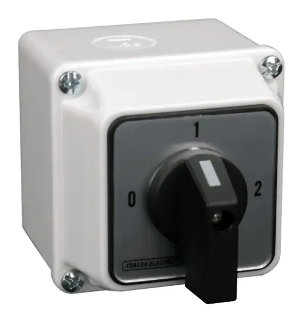 - Krabicový vačkový přepínač, 0-1-2 Tracon TKB-209/3T 400V, 50Hz, 20A, 2×3P, 5,5kW, 48×48mm, 90°, IP44