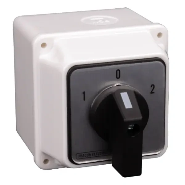 - Krabicový vačkový přepínač, 1-0-2 Tracon TKV-326/3T 400V, 50Hz, 32A, 2×3P, 11kW, 64×64mm, 60°, IP44