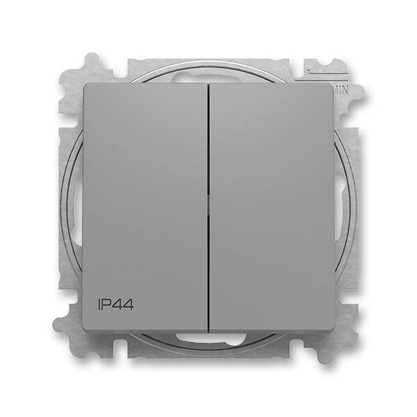 ABB 3559T-A52940 241 ZONI je dvojitý střídavý vypínač s řazení 6+6 (č.5b), s vyšším krytím IP44, v šedé barvě, výrobce ABB pro domovní i průmyslovou elektroinstalaci.