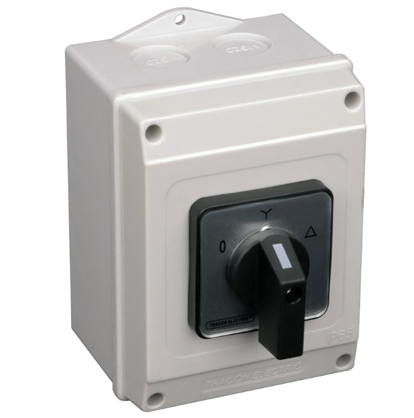 - Přepínač motoru hvězda-trojúhelník, v krabici Tracon TKM-20/CT65 400V, 50Hz, 20A, 5,5kW, 48×48mm, IP65