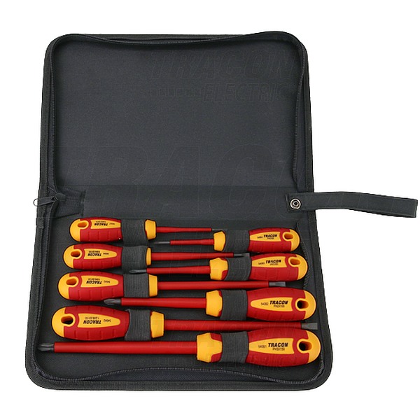 Sada 8 šroubováků Tracon SDSETOF8, s izolací na 1000 V, CrV, SLPH, pouzdro