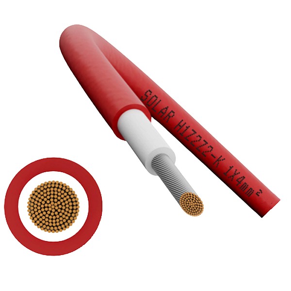 Vodič Solarkabel H1Z2Z2-K 6 rt červený průřezu 6 mm2 pro použití na DC straně fotovoltaických systémů.