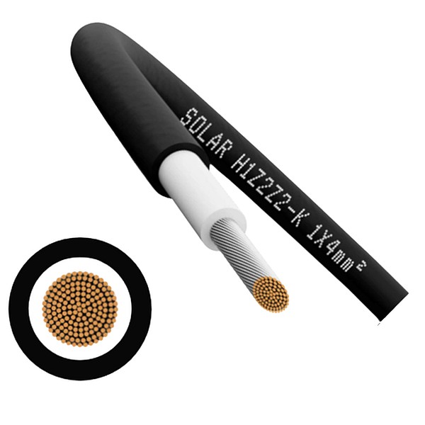 Vodič Solarkabel H1Z2Z2-K 6 sw černý průřezu 6 mm2 pro použití na DC straně fotovoltaických systémů.