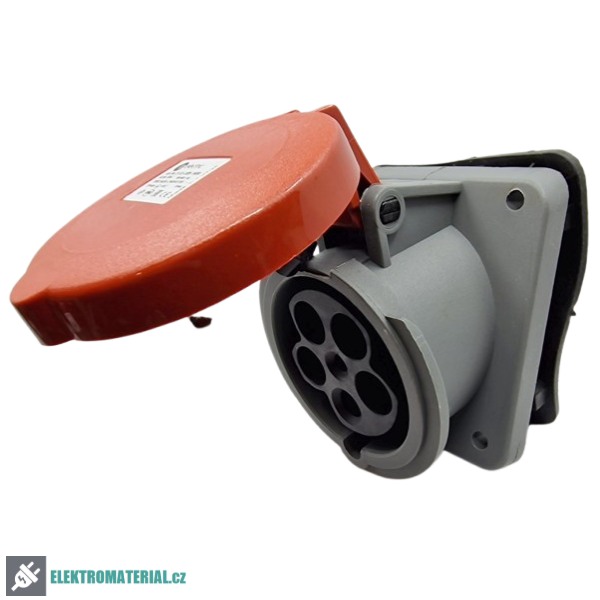 Technické provedení je přizpůsobené pro třífázové rozvody: zásuvka pracuje s napětím 400 V, má 5 pólů a je dimenzována na proud 63 A. Úhlové provedení v kombinaci s přírubou 100×107 umožňuje čistou a přehlednou montáž, ať už jde o nové instalace nebo výměnu stávajícího prvku. Díky tomu je produkt vhodný pro aplikace, kde je klíčová stabilita připojení a dlouhodobá provozní spolehlivost.