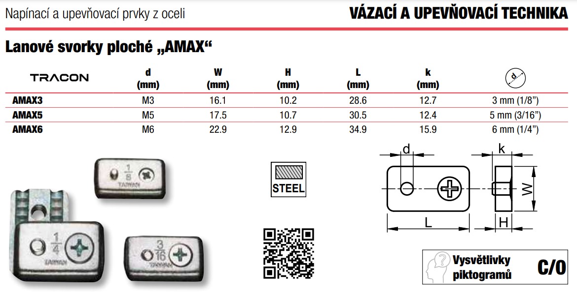 - Tracon AMAX5 Lanová svorka plochá 'AMAX', pozinkovaná ocel d=5mm (3/16coll), M5