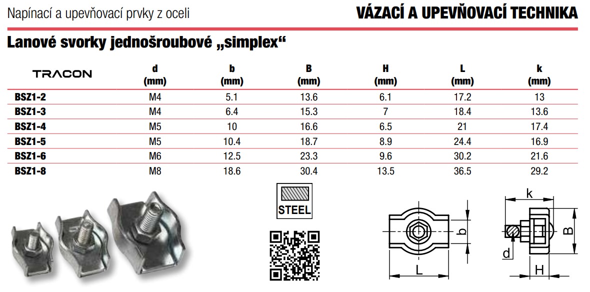 - Tracon BSZ1-6 Lanová svorka jednošroubová 'simplex', pozinkovaná ocel d=6mm, M6