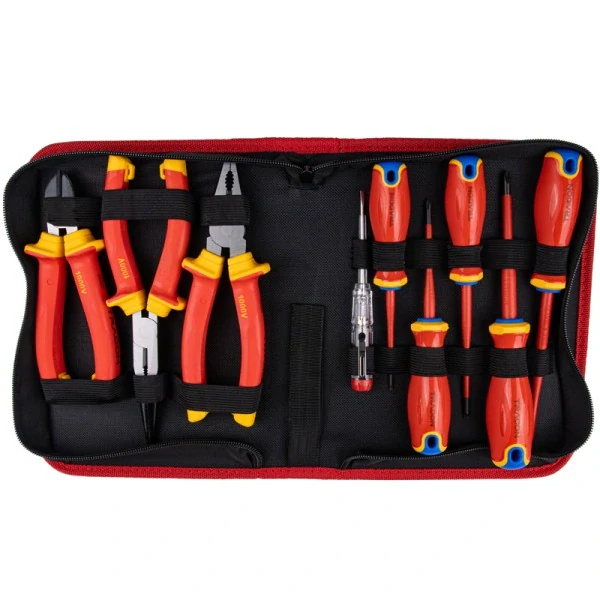 Každý nástroj v této sadě je opatřen ochrannou izolací do 1000 V a vysoce kvalitní plastovou rukojetí, která zajišťuje pohodlný a bezpečný úchop. Tato sada je nejen praktická, ale také nepostradatelná pro každého, kdo pracuje s elektrickými systémy.