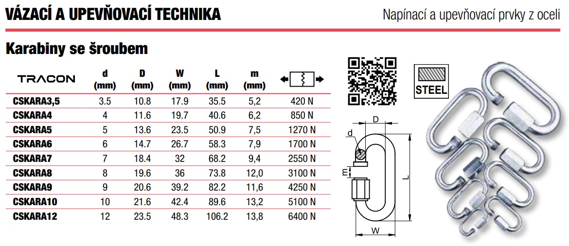 - Tracon CSKARA6 Karabina se šroubem, pozinkovaná ocel d=6mm, 1700N