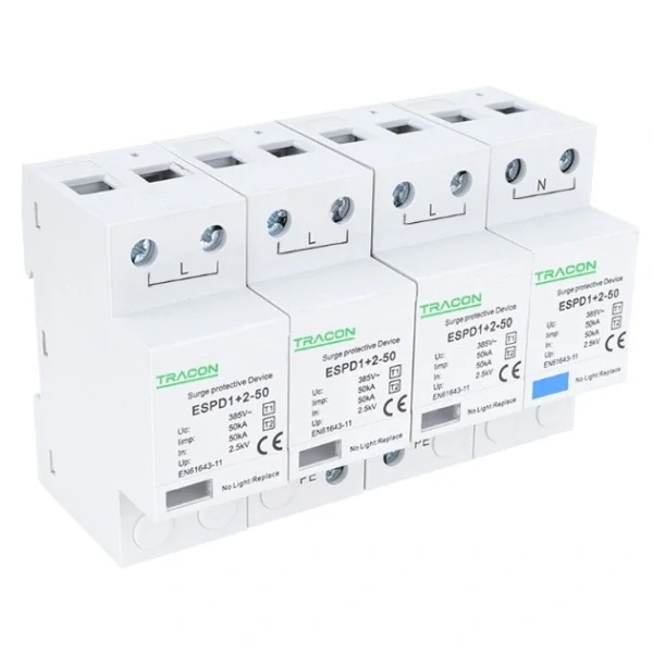 Tracon ESPD1+2-50-4P Svodič přepětí AC, typ T1+T2neodnímatelný moduldo týdne3 988,00 Kč/ Ks3 295,87 Kč bez DPH