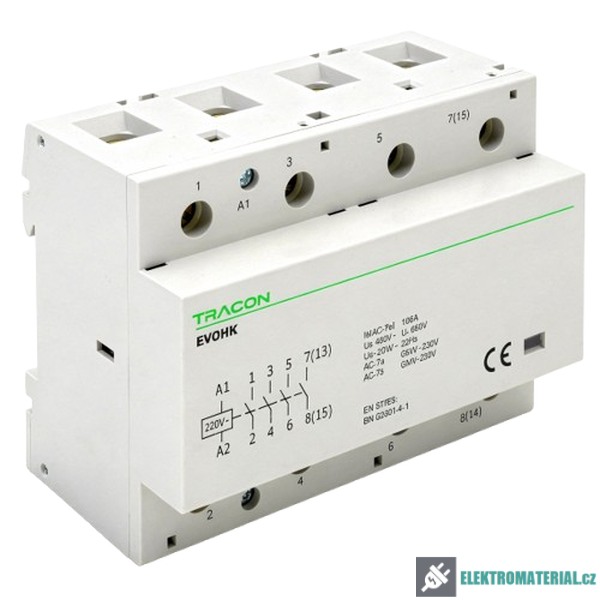 - Tracon EVOHK4-100 Modulární stykač 230V, 50Hz, 4 Mod, 4×NO, AC1/AC7a, 100A
