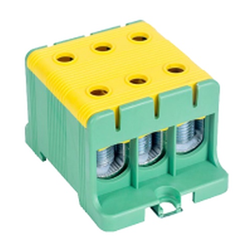 - Tracon FLEAL-50/3ZS Rozvodná svorka odbočná, montáž na DIN lištu, zeleno/žlutá 6-50mm2, max. 1000VAC/1500VDC, max.160A